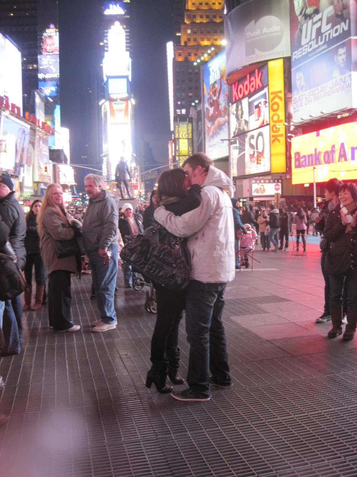 anyway, this little sneaky thing grabbed my hand and lead me straight into the heart of time square. I was giddy and giggly because my boyfriend had flown out early to surprise me! It kinda felt like a chick flick! We stopped walking and I stopped yacking about the city and everything I’d done when I realized he was shaking and really squeezing my hand.